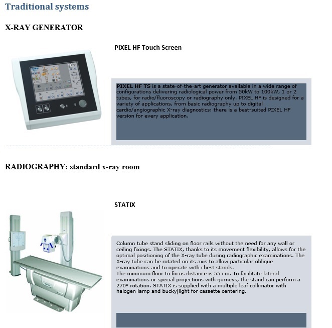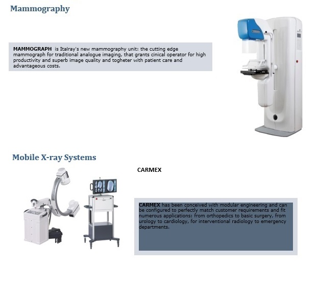 Filmless operation is the future of radiology and ITALRAY DR SOLUTIONS (Digital Radiography) are the cornerstone of a networked department where high quality X-ray images are available within seconds from exposure, can be transferred (DICOM) both to the Hospital Radiology Informative System and to a DICOM printer and to a PACS for archiving.